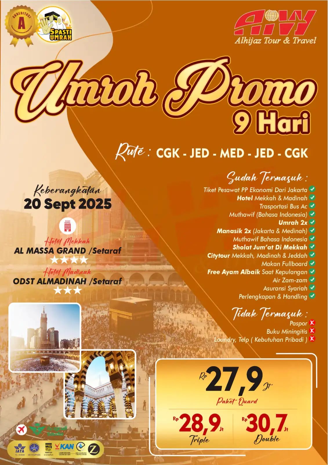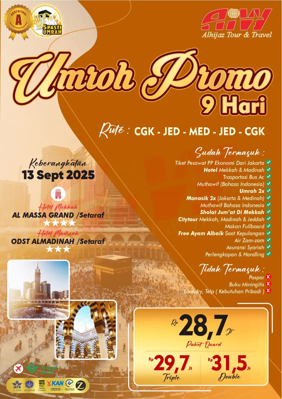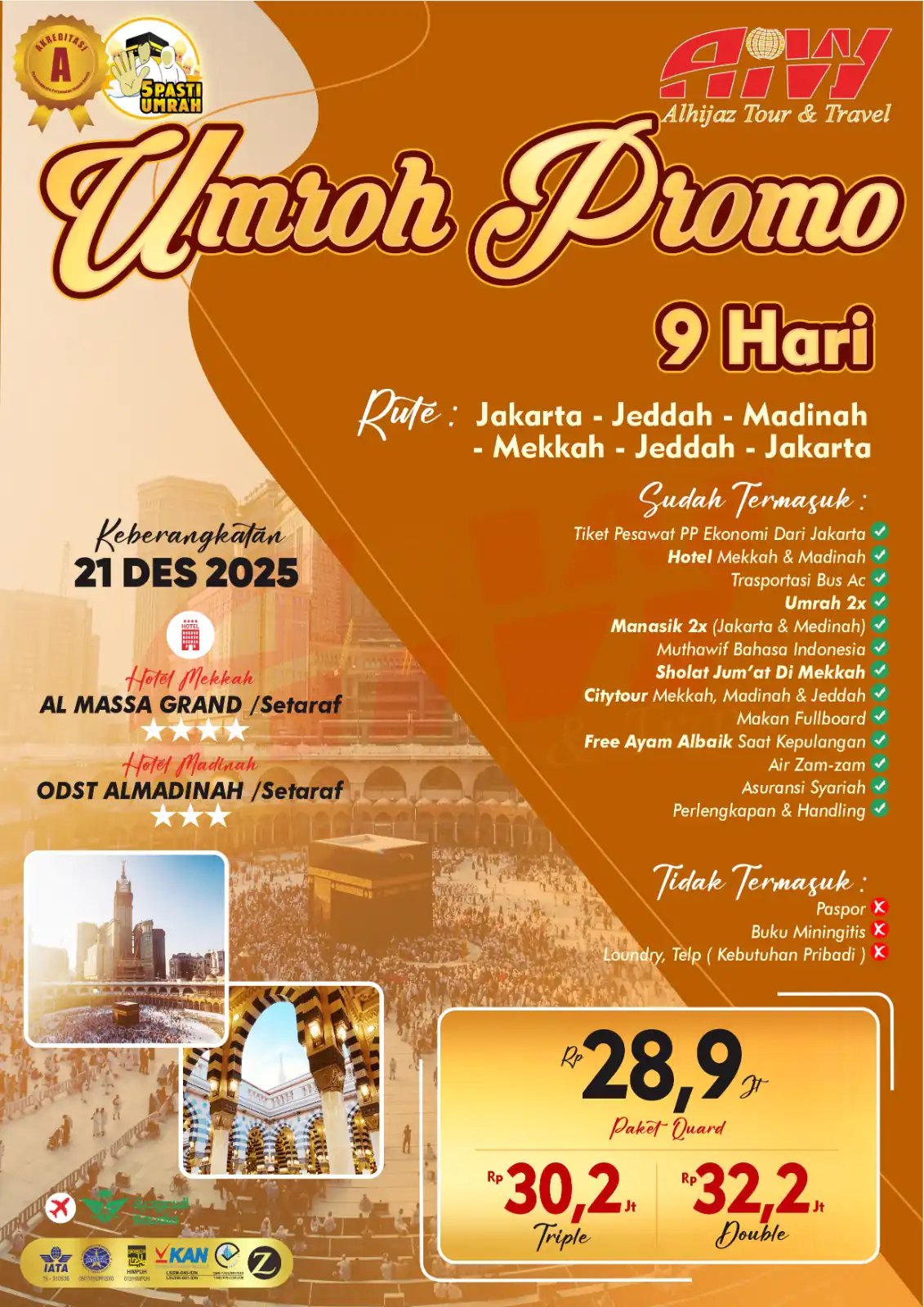 Mengapa memilih Biro Umroh Alhijaz? Dengan pengalaman bertahun-tahun melayani jamaah, Alhijaz telah membuktikan komitmennya untuk memberikan pelayanan umroh yang aman, nyaman, dan lancar. Setiap detail perjalanan direncanakan secara profesional agar ibadah Anda berlangsung khusyuk tanpa hambatan. Percayakan perjalanan spiritual Anda bersama Alhijaz, mitra yang berpengalaman dan terpercaya dalam menemani perjalanan ibadah Anda.