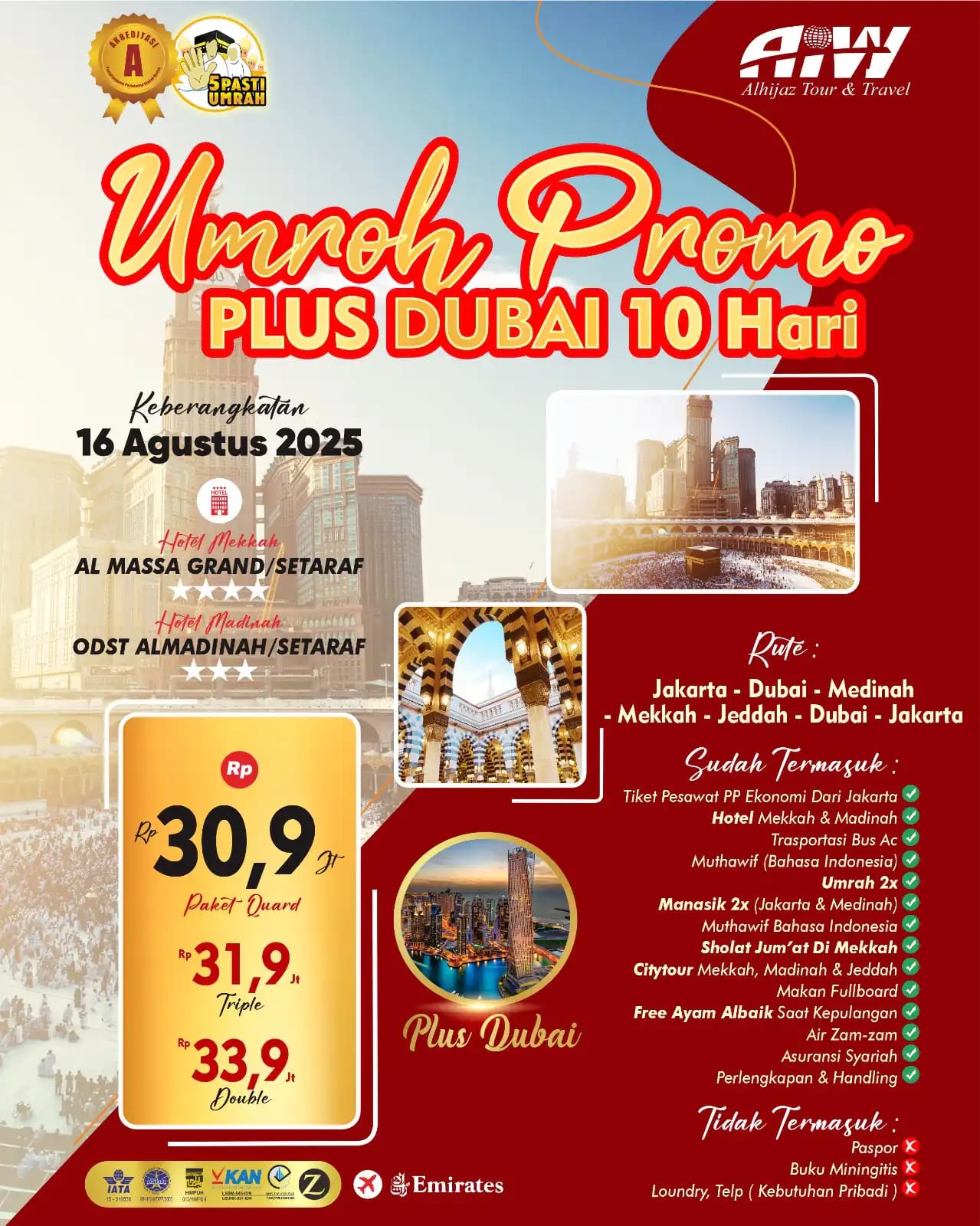 Gabungkan pengalaman ibadah di Tanah Suci dengan kemegahan kota modern Dubai. Nikmati perjalanan penuh makna dan pengalaman, dengan rangkaian destinasi yang memperkaya spiritualitas dan memperluas wawasan.
