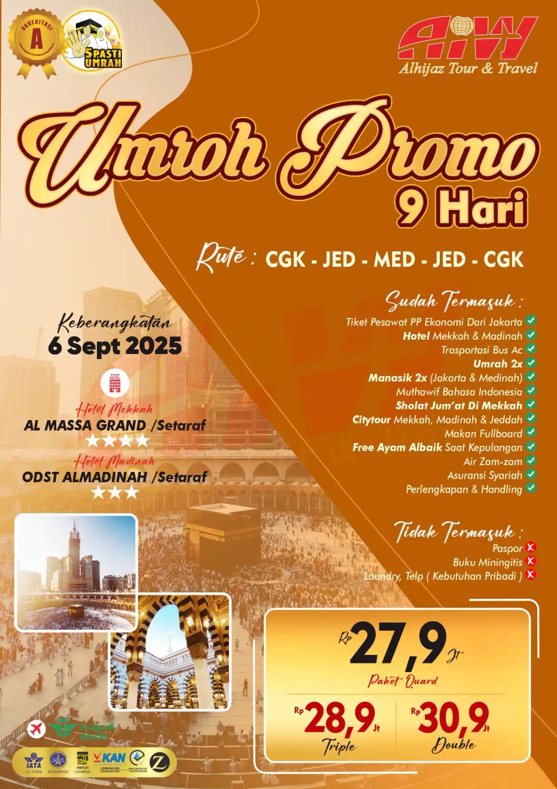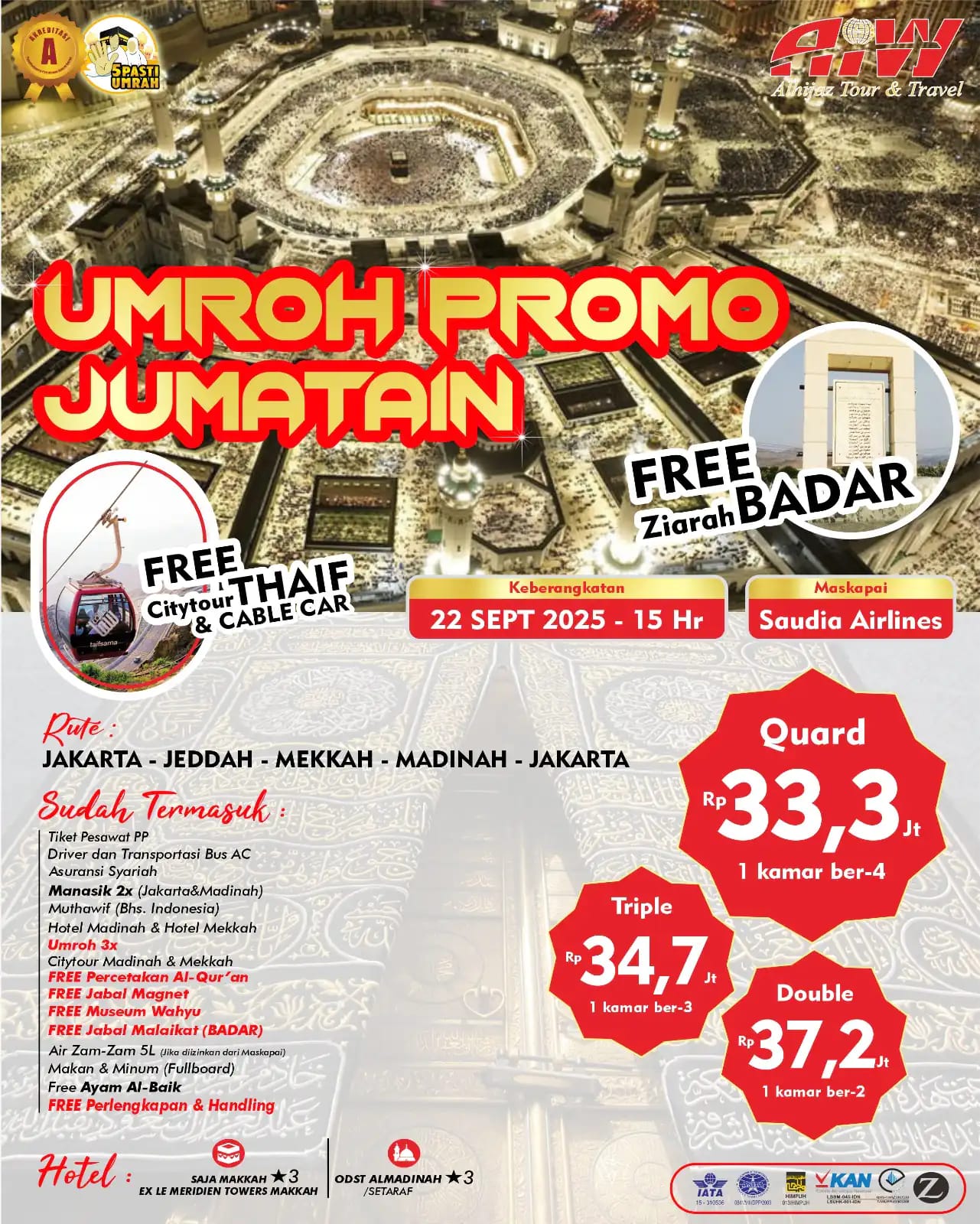 Paket Umroh harga spesial dengan jumlah terbatas. Nikmati perjalan umroh dengan khusyuk dan nyaman seperti jamaah lain namun dengan biaya yang lebih terjangkau. segera amankan kuotanya.